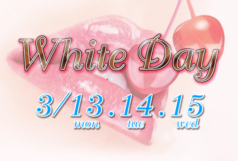 本日13日(月)から3日間、ホワイトデーイベントを開催中!キャスト全員純白ドレスでお出迎え♪
